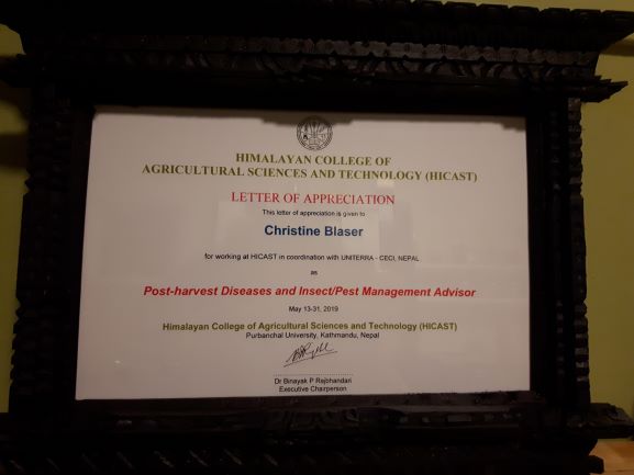 The last week I was in Nepal my internet access at the local house was spotty which prevented me from posting to the blog. While at HICAST, I was documenting all the information from the in-lab training into electronic files and obtaining pricing quotes for antibiotics/anti-fungal drugs and ELISA testing kits for HICAST. The college has limited ingredients when it came to some of the recipes for making media we use in Canada. Uniterra has a $500 budget for each volunteer that can be used for training and/or materials to help the partner organization. My last Friday in Nepal, we had a final meeting to go over my mandate and what I achieved while in Kathmandu. I gave a short PowerPoint presentation on my work, and I was surprised with a letter of appreciation from HICAST. As I was the 3rd person from the University of Guelph to volunteer at HICAST, there is a strong interest to explore a partnership between the college and the university.